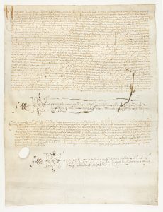 1531. MANUSCRITO : (PERGAMINO). - FLASSÀ. ECRITURA DE HERENCIA OTORGADA ANTE NOTARIO DE GERONA PETRUS GARBÍ. 37 x 29 cm. Mauscrito sobre pergamino.