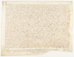 1561. MANUSCRITO : (PERGAMINO). - DONACIÓN A UNA HIJA, ANTE EL NOTARIO PEDRO GARBI. 24 X 30 cm. Manuscrito sobre pergamino.