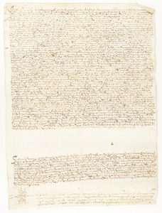 1608. MANUSCRITO : (PERGAMINO). - VENTA DE UNA PIEZA DE TIERRA POR ESTEBAN PEREMIQUEL Y SU ESPOSA JERONIMA EN FLAÇÀ. 41 X 30 cm. Manuscrito sobre pergamino.
