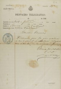 1862. MANUSCRITO : DESPACHO TELEGRÁFICO DEPOSITADO EN GERONA Y RECIBIDO EN BARCELONA. una h. en 4º. Con el sello húmedo de telégrafos.