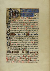 La primera h. con iluminación del escudo del marquesado de Argensola.