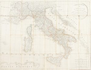 1821. MAPA : ( ITALIA). - CARTE GÉNÉRALE DE L´ ITALIE REDIRIGÉE SUR LES OBSERVATIONS LES PLUS AUTHENTIQUES... París : C. F. Delamarche, 1821. 53 x 67,8 cm. Pequeñas pérdidas en algún pliege, una afecta levemente la cartela. Enc. en...