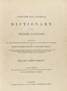 1848 ca. - LIBRO : (MAPAS). - BARCLAY, JAMES : DICTIONARY OF THE ENGLISH LANGUAGE : COMPREHENDING THE EXPLANATION, PRONUNTIATION, ORIGIN, AND SYNONYMES OF EACH WORD ; Epitome of HISTORY, Biography, and the useful SCIENCES [...] a New Edition,...