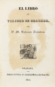 1843. - LIBRO : (VIAJES). - ALCÁNTARA LAFUENTE, M. D. : EL LIBRO DEL VIAJERO EN GRANADA. Granada : Imp. De Sanz, 1843. 12º. 1 h. + 329 p. Frontis grabado por Giraldo. Enc. en cartoné.