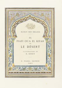 1911. - LIBRO : (VIAJES). - SLIMAN BEN IBRAHIM : EL FIAFI OUA EL KIFAR, OU LE DÉSERT. París : H. Piazza, 1911. 4º menor. 5 h. + 198.