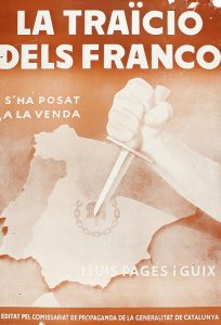 1937 ca. CARTEL : (GUERRA CIVIL). - LA TRAÏCIÓ DELS FRANCO S´HA POSAT A LA VENDA. LLUIS PAGES I GUIX. Cartel litográfico, 43 x 29 cm. Pequeñas faltas en una esquina.