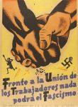 • FRENTE A LA UNION DE LOS TRABAJADORES NADA PODRA EL FASCISMO. 50 ANIVERSARIO DE LA UGT DE ESPAÑA. Cartel litográfico, 34 x 26 cm.