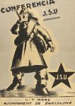 • MENTOR : . CONFERENCIA DE LA J.S.U. DE BARCELONA 6-7 MARÇ. AJUNTAMENT DE BARCELONA. Cartel litográfico, 32,5 x 22,5 cm.