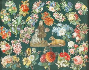 1880 ca. - CROMOS : COMPOSICIÓN CON 27 CROMOS CROMOLITOGRAFICOS DE TEMATICA FLORAL. Enmarcado.