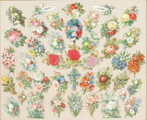 1880 ca. - CROMOS : COMPOSICION DE 40 CROMOS CROMOLITOGRÁFICOS DE TEMÁTICA FLORAL. Enmarcado.