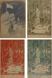 1890 ca. - POSTALES : LOTE DE 4 FELICITACIONES CATALANISTAS.