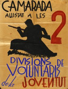 1937 ca. ORIGINAL ARTÍSTICO : (GUERRA CIVIL). - CAMARADA ALLISTAT A LES 2 DIVISIONS DE VOLUNTARIS DE LA JOVENTUT. Original para un cartel, 110 x 88 cm. Sin firmar.