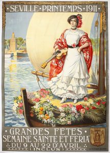 1911. CARTEL : (FIESTAS Y CARNAVALES). - PINO Y SARDA, M : SEVILLE. PRINTEMPS 1911. GRANDES FETES. SEMAINE SAINTE ET FERIA. Litografía. 160x118cm. (63x46,5in.). - A-. Entelado.