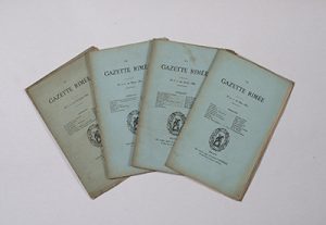 Paris, Alphonse Lemerre, 20 février - 20 juin 1867. 5 livraisons in-8, brochées, emboîtage en demi-maroquin rouge (Honegger). Collection complète de cette revue fondée et dirigée par Robert Luzarche. Entre autres contributions poétiques d'Anatole France, Louis Hémon, Emmanuel des Essarts, Louis-Xavier de Ricard, Jehan Flamel et Robert Luzarche, cette collection comprend trois poèmes de Verlaine en pré-originale : « Fêtes galantes » qui reparaîtra dans le recueil éponyme (1869) sous le titre « Clair de lune » ; « Trumeau » qui reparaîtra dans le même recueil sous le titre « Mandoline » ; « Les Poètes », qui paraîtra en 1871 sous le titre « Les Vaincus » dans Le Parnasse contemporain. Ce poème, augmenté de dix autres quatrains, sera publié sous le même titre en 1884 dans Jadis et naguère. Infimes déchirures marginales.