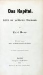 Édition originale. Le Capital est l'œuvre la plus importante de Karl Marx, qui la considérait lui-même comme « le plus redoutable missile qui ait été lancé à la tête de la bourgeoisie ». Ce volume, contenant le Livre premier, sous-titré Le Développement de la production du capital, est le seul qui soit de la main de Marx. Il a été tiré à 1000 exemplaires. Les deux livres suivants ont été établis par Engels d'après les brouillons laissés par Marx à sa mort et ne furent édités respectivement qu'en 1885 et en 1894. Exemplaire très pur dans une élégante reliure allemande de l'époque. De la bibliothèque M. Hinsberg, avec cachet sur une garde. Cachet non identifié aux initiales VA. Dos légèrement passé, infimes réfections aux coins. Rare en si désirable condition. Rubel, n°633 – Marx & Engels Erstdrucke, 32 – Stammhammer, I, 145, n°7 – Printing and the Mind of Man, n°359 (« The new religion »).