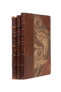 Le Voile. Joué à la Comédie-Française le 21 mai 1894. Paris, Paul Ollendorff, 1897. In-12, demi-maroquin lavallière avec coins, doubles filets dorés, tête dorée, couverture et dos (Reliure de l'époque). Édition originale. Un des 10 exemplaires de tête sur hollande, seul grand papier. De la bibliothèque du comte de Bondy, avec ex-libris. Coins frottés. On joint deux ouvrages en reliure identique, du même : La Vocation. Paris, Paul Ollendorff, 1895. In-16. Édition originale, illustrée par Henri Cassiers. Un des 50 exemplaires de luxe, imprimé sur chine (non num.). Quelques rousseurs. – L'Hiver mondain. Poésies. Bruxelles, H. Kistemaeckers, [1884]. In-16. Édition originale, sans tirage en grand papier. Elle est ornée de deux croquis de Jan van Beers. Charnières frottées et fendillées, rousseurs. P. Maes, Georges Rodenbach, 1952, pp. 305-311 – A. Grisay, « Bibliographie des éditions originales de Georges Rodenbach », Le Livre et l'Estampe, n°44, III/1965, pp. 309-313.