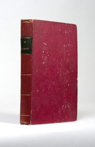 De l’amour, considéré dans les lois réelles, et dans les formes sociales de l’union des sexes. Paris, Cérioux, Arthus Bertrand, février 1806. In-8, bradel cartonnage rouge, dos lisse orné de filets dorés, pièce de titre verte, non rogné (Reliure de l'époque). Édition originale rare et recherchée. Précurseur du romantisme, Étienne Pivert de Senancour (1770-1846) ne connut de gloire que posthume et pour un seul livre, Obermann, son chef-d'œuvre, passé inaperçu en 1804 puis redécouvert par George Sand et Sainte-Beuve. Exemplaire à toutes marges dans son premier cartonnage. Quelques traces d'usure à la reliure. Merlant, 25 (A) – Escoffier, n°163 – Carteret, II, 334.
