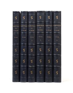 Œuvres complètes. Paris, Pagnerre, 1859-1865. 15 volumes in-8, demi-chagrin bleu nuit, dos orné de filets à froid et d'un fleuron doré répété, tranches mouchetées (Reliure de l'époque). Édition originale de la traduction de François-Victor Hugo, quatrième des cinq enfants de Victor Hugo et Adèle Foucher. Sans les trois volumes de supplément parus en 1866.