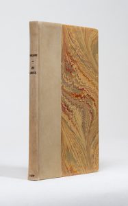 Les Amies. Scène d'amour sapphique. Sonnets par le licencié Pablo de Herlagnèz. Ségovie, s.n., 1870. Plaquette in-16, bradel demi-vélin ivoire, couverture (Reliure moderne). Édition rare, tirée à 100 exemplaires sur vergé, selon la justification. Le texte présente quelques variantes typographiques par rapport à l'édition publiée sous la même date par Vital Puissant, à Bruxelles.