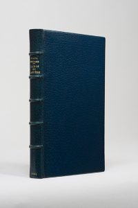 Jadis et naguère. Paris, Léon Vanier, 1884. In-12, maroquin bleu janséniste, dentelle intérieure dorée, tranches dorées sur témoins, couverture et dos, étui (Ed. Klein). Édition originale. Tirage à 500 exemplaires sur vélin blanc. Exemplaire enrichi d'une lettre autographe signée de Paul Verlaine au poète Louis Labat, datée du 11 février 1890, 2 pp. in-8, avec enveloppe adressée : « Très bien, vos Réticences, mon cher poète, très intimes et très discrètes, comme il sied. Ce sera un charmant et pénétrant volume de demi-teintes, comme il n'en paraît plus assez. J'aime pour ma part ce genre qui est, à mes yeux, un des meilleurs titres peut-être de Victor Hugo à la vraie et judicieuse admiration de ses fervents desquels je suis au fond. N'est-ce pas aussi votre avis que les Voix intérieures, les Feuilles d'automne, les Chants du crépuscule, les Rayons et les Ombres, constituent dans l'œuvre du Maître un coin, un vaste coin, bien à part, frais, sain, charmant, où se reposer par instant des majestueux fracas, des épiques et un peu théâtrales (ou théâtraux) tintammares [sic] d'à côté? » Dos passé. On joint, du même : Jadis et naguère. Nouvelle édition. Paris, Léon Vanier, 1891. In-12, bradel demi-percaline grise, couverture. Seconde édition, en partie originale, ornée d'un portrait-frontispice par Cazals. Elle contient une strophe inédite dans « Crimen amoris ». Tirage à 1100 exemplaires sur vergé blanc, dont 100 réservés à l'auteur.