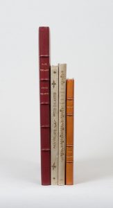 Fêtes galantes. Paris, Léon Vanier, [1886]. In-12, demi-maroquin orangé, couverture (G. Gauché). Seconde édition, la première publiée par Léon Vanier. Tirage à 600 exemplaires sur hollande. Exemplaire enrichi d'une affichette annonçant le concert Verlaine chanté par Suzanne Camille-Mauclair (Nice, 4 janvier 1933), repliée en tête du volume. Couverture conservée roussie. On joint trois éditions postérieures du même ouvrage : Fêtes galantes. Paris, Léon Vanier, 1891. In-12, bradel demi-vélin, dos orné, tête dorée, couverture et dos (Reliure de l'époque). Troisième édition. Fêtes galantes. Paris, Léon Vanier, 1896. In-12, bradel demi-vélin, dos orné, couverture (Reliure de l'époque). Quatrième édition. Fêtes galantes. [Lausanne], H. L. Mermod, 1944. In-4, demi-maroquin rouge avec coins, filets dorés, tête dorée, couverture et dos (Reliure moderne). Édition illustrée de quatorze dessins de René Auberjonois. Tirage à 630 exemplaires, celui-ci un des 60 sur Ingres de Guarro Casas.