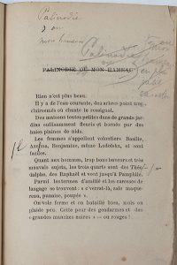 Les Mémoires d'un veuf. [Asnières, Imprimerie Louis Boyer et Cie, 1886]. In-12, en feuilles, couverture factice portant au crayon : Verlaine Les Mémoires d'un veuf Vanier éditeur, chemise en demi-maroquin et étui (Honegger). Apparemment les toutes premières épreuves des Mémoires d'un veuf. Un prote de l'imprimerie Boyer a corrigé au crayon environ 140 coquilles et fautes typographiques diverses, mais sans toucher au texte. En l'absence du manuscrit, dont on a perdu la trace, ces épreuves conservent le texte d'un état primitif inconnu. Manquent les pp. 31-34 (Nuit Noire) et 109-144 (Monomanie, Les Estampes, Les Fleurs artificielles, L'Hystérique, Jeux d'enfants, Corbillard au galop, Scénario pour ballet). L'encre a bavé sur certaines pages, sur d'autres l'encrage est insuffisant. Déchirures marginales. Couverture salie et déchirée. On joint : Les Mémoires d'un veuf. [Asnières, Imprimerie Louis Boyer et Cie, 1886]. In-12, maroquin vert janséniste, filets intérieurs dorés, étui (Marius Michel). Les dernières épreuves, complètes, de l'édition originale des Mémoires d'un veuf. Modifiées par Verlaine, elles portent encore de nombreuses et parfois importantes corrections autographes. Outre les classiques corrections typographiques repérées tout au long du texte, de nombreuses phrases ou des paragraphes entiers sont supprimés, modifiés, réécrits, tandis que des ajouts sont introduits çà et là. On compte près de 450 retouches. Les passages cancellés restant lisibles, le texte présente une version différente particulièrement intéressante en raison de l'ensemble des remaniements voulus par l'auteur peu avant la mise sous presse. Des bibliothèques du Docteur Millot, avec ex-libris doré dans la bordure intérieure, et du Docteur Lucien-Graux (1957, n°225), avec ex-libris. Feuillets reliés dans le désordre (L'Hystérique, pp. 125-128 est mal placé), encrage parfois insuffisant. Dos légèrement passé. Exceptionnelle réunion de deux jeux d'épreuves d'imprimeries de cet ouvrage.