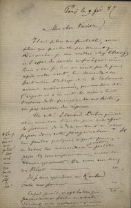 Amour. Paris, Léon Vanier, 1888. In-12, demi-maroquin brun à long grain avec coins, filets dorés, dos lisse orné, tête dorée, non rogné, couverture et dos (Semet & Plumelle). Édition originale. Un des 50 exemplaires sur hollande. Exemplaire enrichi d'une précieuse lettre autographe signée de Verlaine à Léon Vanier évoquant Rimbaud, datée de Paris, [Hôpital Broussais], 9 février 1887, 2 pages in-8 sur un feuillet volant. Verlaine y évoque le projet de relancer M. Cabannes, avocat et ancien avoué, qui détient encore de l'argent revenant au poète dans l'affaire de la succession de sa tante. « Un M. Edouard Dubus [...] m'a offert sa journée de Dimanche à m'accompagner dans cette pérégrination. Car je ne saurai me piloter tout seul avec ma jambe en "pâté de foie". » Vanier lui doit encore 10 fr. sur un Mérat. [Les Hommes d'aujourd'hui, n°396]. « Et je vous apporterai un Rimbaud Batte aux pommes... 10 fr. [...] ce qui ferait vingt balles [...]. » Verlaine fait ici allusion à l'Arthur Rimbaud des Hommes d'aujourd'hui auquel il travaille mais dont il ne donnera le bon à tirer que l'année suivante. [Les Hommes d'aujourd'hui, n° 318]. « Préparez aussi les manuscrits d'Amour et de Parallèlement que voici finis. Je vous apporterai la dernière pièce d'Amour. Je mettrai ça sornmairernent en ordre et nous toucherions un mot de prix... » Cette lettre a été publiée par Adolphe van Bever, sans doute d'après une copie (Corr., 1923, II, 66-68), avec cinq coquilles et des erreurs de ponctuation. Des bibliothèques Jules Exbrayat (1970, n°1107, sans la lettre), avec ex-libris, et Jean Lebrun, avec ex-libris. Mors frottés.