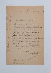 Les Poètes maudits. Paris, Léon Vanier, 1888. In-12, bradel demi-percaline grise, non rogné, couverture (Reliure de l'époque). Seconde édition, en partie originale, dans laquelle les études sur Marceline Desbordes-Valmore, Villiers de l'Isle-Adam et le Pauvre Lélian (Verlaine lui-même) paraissent pour la première fois. Elle est ornée de six portraits hors texte par Manuel Luque. Tirage à 600 exemplaires sur vélin. Exemplaire enrichi d'un billet autographe signé de Verlaine à Gustave Kahn, alors directeur de La Revue indépendante, datée Paris, 3 avril 1888. 1 p. in-12. « Je vous confirme mon adresse, rue Royer-Collard, 14, et ma lettre d'il y a quelques jours où je vous priais de faire toute diligence en vue de me faire parvenir, par retour de poste, la somme qui m'est due pour la nouvelle Conte de fées... ». La nouvelle venait de paraître dans le numéro de mars de La Revue indépendante. Elle sera ensuite insérée dans les Histoires comme ça. De la bibliothèque du colonel Daniel Sicklès (1993, n°5563). Quelques rousseurs, déchirure marginale à un feuillet.