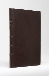 Épigrammes. Paris, Bibliothèque artistique et littéraire, 1894. In-12, maroquin brun janséniste, doublures bord à bord et gardes de même maroquin, tranches dorées sur témoins, couverture, chemise et étui (Huser). Édition originale. Elle est ornée d'un portrait-frontispice par F.-A. Cazals. Un des 15 exemplaires sur chine, non numéroté. Le frontispice est en épreuve sur japon et la couverture est en papier de ton crème, tandis qu'elle est brune pour le tirage ordinaire. Très bel exemplaire en reliure triplée de Huser. L'exemplaire était présenté dans le catalogue Verlaine de la librairie Georges Heilbrun (1949, n°102). Dos de la chemise passé.