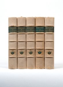 Lettre autographe signée à Paul Verlaine. [Paris], 27 septembre 1889. 2 pages in-4 (265 x 205 mm). Gabriel Échaupre, dont on sait peu de choses, rappelle à Verlaine les conditions dans lesquelles il a signé un contrat concernant principalement les Poèmes Saturniens le 27 mars 1888 mais aussi des œuvres parues ou à paraître « pour être réunies et publiées plus tard sous le titre d'Œuvres complètes » (à raison de 125 francs de droit d'auteur par volume et par édition). « Or rien ne prouve que l'obligation de publier plus tard vos œuvres complètes soit tenue de votre vivant. C'est donc là une condition parfaitement dérisoire et vous ferez bien de traiter au sujet de vos œuvres complètes avec un éditeur sérieux ». Échaupre essaie ici de détacher Verlaine de ses obligations vis-à-vis de Vanier. « Donc bon courage, tranquillisez-vous et en bon ouvrier que vous êtes martelez et ciselez de la prose sonore et des vers étincelants... » Les Œuvres complètes paraîtront finalement après la mort du poète, chez Messein à partir de 1898. Un sonnet de Dédicaces est dédié à Échaupre. Réparations au scotch dans la pliure avec légers manques.  On joint : VERLAINE (Paul). Œuvres complètes. Paris, Léon Vanier, 1899-1900 [1898-1901]. 5 volumes petit in-8, demi-maroquin crème avec coins, non rogné (Reliure de l'époque). Première édition collective, publiée par Charles Morice et par Léon Vanier, où les inadvertances sont nombreuses. Détail du tirage inconnu. Le tome V contient un portrait frontispice d'après une photographie. Accroc au dos du tome III.