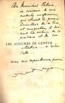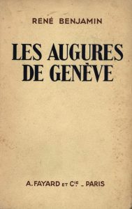 Les Augures de Genève. Paris, Arthème Fayard, 1929. In-12, broché. Édition originale sur alfa. Envoi autographe signé au maréchal Pétain, dont René Benjamin fut un soutien sans réserve durant l’Occupation et auquel il consacra trois ouvrages : au Maréchal Pétain, en souvenir de ces modestes conférences, qui étaient le premier brouillon de ce livre, et auxquelles il donnait la valeur de sa présence et de son attention... si redoutable. Dos terni, des rousseurs.