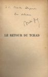 Ensemble de dix ouvrages dédicacés à Charles Dupont, chef comptable des éditions Gallimard. AYMÉ (Marcel). La Table-aux-crevés. Paris, Gallimard, 1929. – GARY (Romain). Les Racines du ciel. Ibid., 1956. – GIDE (André). Le Retour du Tchad, suite du Voyage au Congo. Ibid., 1928. – GIDE (André). Œdipe. Ibid., 1931. – KESSEL (Joseph). Le Tour du malheur. I. La Fontaine Médicis. – II. L’Affaire Bernan. – III. Les Lauriers roses. – IV. L'Homme de plâtre. Ibid., 1950. 4 vol. – MALRAUX (André). La Voie royale. Paris, Grasset, 1930. – MALRAUX (André). La Condition humaine. Paris, Gallimard, 1933. – MALRAUX (André). Le Temps du mépris. Ibid., 1935. – PAULHAN (Jean). Le Guerrier appliqué. Ibid., 1930. – PAULHAN (Jean). Les Fleurs de Tarbes, ou la terreur dans les lettres. Ibid., 1941. Soit 10 ouvrages en 13 volumes in-8, in-12 et in-16, brochés.
