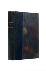 Du cran ! Paris, Mercure de France, 1925. In-12, bradel demi-maroquin bleu, tête bleue, non rogné, couverture et dos (Reliure de l'époque). Édition originale de la traduction française par Louis Fabulet. Un des 550 exemplaires sur vergé de fil Montgolfier. Exemplaire de Claude Farrère, annoté de sa main et dédicacé par le traducteur : en commune admiration pour Rudyard Kipling et en haute sympathie. Louis Fabulet. Farrère ajouta une note au crayon sous l'envoi : C'est la dernière fois que ce grand traducteur m'a écrit. Exemplaire enrichi d'une émouvante lettre d'amitié de Louis Fabulet et d'une lettre dactylographiée signée par Caroline Kipling, l'épouse de l'auteur, toutes deux adressées à Claude Farrère, avec enveloppes. Un petit accroc au dos.