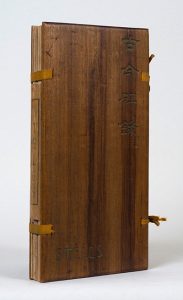 Stèles. Pékin, Collection coréenne ; Paris, Georges Crès & Cie, 1914. In-4 étroit plié à la chinoise, couverture de papier brun avec pièce de titre imprimée, étui d'éditeur composé de deux ais de bois réunis par deux rubans de soie orangée, titre et idéogrammes chinois gravés en vert sur le premier plat. Seconde édition, publiée dans la Collection coréenne que Segalen dirigeait à Pékin. Tirage à 640 exemplaires, celui-ci un des 570 sur vergé feutré. Couverture piquée de rousseurs, manque de quelques centimètres à un ruban.