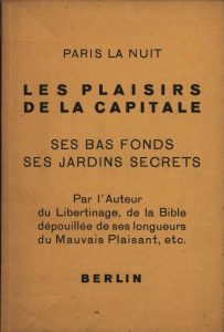 Les Plaisirs de la capitale. Paris, La nuit ses bas-fonds, ses jardins secrets. Berlin, S.E. 1923. In-12, broché, sous emboîtage cartonné, titré. Édition originale limitée à 200 exemplaires. Très rare.