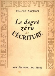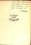 Le degré zéro de l'écriture. Paris, Éditions du Seuil, 1953. Exemplaire du service de presse. Pas de grand papier. Envoi autographe signé de Roland Barthes au linguiste Pierre Guiraud. « Pour Pierre Guiraud, ces quelques préoccupations communes, avec toute l'amitié de R. Barthes ».