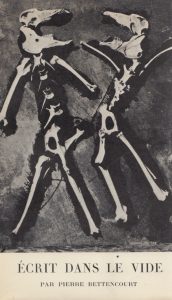 Écrit dans le vide. Pierre Bettencourt. In-12, couverture illustrée. Édition originale publiée à petit nombre et comportant des illustrations sur papier bleu de Bettencourt.