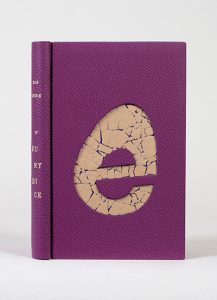 Histoire d'Eurydice. Las Palmas, Pierre Bettencourt. In-16, reliure à plats rapportés, box grainé lilas, découpe sur le premier plat figurant des coquilles d'œuf, dos titré, doublures et gardes de papier imprimé, couverture et dos conservés, emboîtage (Daniel Mercher). Édition originale parodiant Marcel Jouhandeau limitée à 210 exemplaires numérotés sur Arches.