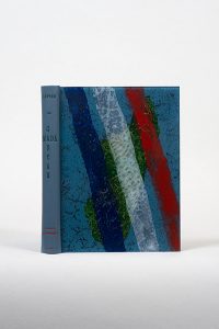 Lettre de Madagascar. Sur la presse de l'auteur à la campagne, 1949. In-12, reliure à plats rapportés, plats de plexiglas à impressions, dos de box bleu ciel titré, doublures et gardes de papier imprimé, couverture et dos conservés, étui (Daniel Mercher). Édition originale limitée à 75 exemplaires numérotés sur Arches. Rare.
