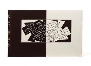 Cinq poésies en hommage à George Braque. Genève, E. Engelberts, 1958. In-12 oblong, reliure de box chocolat et ivoire portant sur les deux plats un décor géométrique de même couleur, dos titré or, tranches dorées, chemise demi-box ivoire titrée or, étui (Pierre-Lucien Martin - 1960). Édition originale limitée à 106 exemplaires. Un des quarante exemplaires numérotés sur Arches signés par René Char et Georges Braque, comportant la belle lithographie de Georges Braque. Superbe exemplaire.