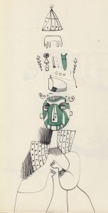 À Tiens feu tu l'auras. Album unique. Buenos Aires, 1966. In-4. Sous couverture cartonnée. Exemplaire unique entièrement manuscrit du poème de André Coyné, illustré de dessins originaux à l'encre réhaussés à l'aquarelle et découpages de Nicolas Rubio. André Coyné, écrivain et traducteur fut l'ami des surréalistes sud-américains et joua un rôle important dans la diffusion de leurs oeuvres. Nicolas Rubio, peintre issu d'une famille de réfugiés espagnols a vécu dix ans en France avant d'émigrer à Buenos Aires en 1948. Depuis 2013 il vit de nouveau à Paris. L'artiste ainsi que son épouse la sculpteur Esther Barugel réhabilitent un art décoratif de Buenos Aires passé de mode, le fileteado. Album unique de belle qualité.