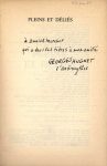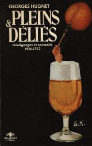 Pleins et déliés. Souvenirs et témoignages. 1926-1972. La Chapelle-sur-Loire, Guy Authier, 1972. In-8, broché, emboîtage en demi-box grainé ocre (Daniel Mercher). Édition originale. Envoi autographe signé de l'auteur : à Daniel Mercher qui a tous les titres à mon amitié, G. H., l'anti-mythes. Exemplaire accompagné de la bande d'annonce et de 4 pp. de notes bibliographiques de la main de Hugnet. On joint : THIRION (André). Les Éboueurs ne sont plus en grève. S.l.n.d. [1972]. Plaquette in-8 de [8] pp., agrafé. Édition originale. Un des 60 exemplaires de tête sur vélin chiffon, signés par l'auteur et accompagnés d'une eau-forte originale de Henri Maccheroni légendée, justifiée et signée au crayon par l'artiste. Ce texte est une virulente réponse aux attaques publiées par Hugnet dans Pleins et déliés.