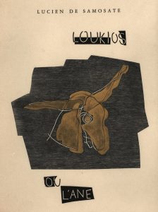 Loukios ou l'Âne. Paris, Tériade, 1947. In-4, en feuilles, couverture illustrée par Henri Laurens, chemise titrée et étui de l'édition. Tirage limité à 250 exemplaires numérotés, signés par l'illustrateur et illustrés de bois originaux hors et dans le texte d'Henri Laurens.