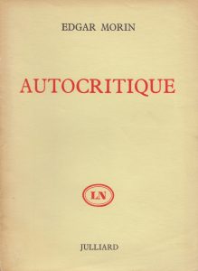 Autocritique. Paris, Julliard, 1959. In-8, broché. Édition originale. Pas de grand papier. Exemplaire de Maurice Blanchot portant cet envoi autographe signé : « à Maurice Blanchot, avec ma plus grande estime. Edgar Morin ».