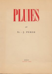 Pluies. Buenos Aires, Éditions des lettres françaises, 1944. In-4, broché. Édition originale limitée à 392 exemplaires. Un des 300 exemplaires numérotés sur papier type hollande.