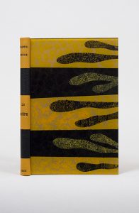 La Guêpe. Paris, Seghers, 1945. In-12, reliure à plats rapportés, plats de plexiglas imprimé et peint, dos bicolore simili lézard titré, doublures et gardes de papier imprimé, couverture et dos conservés (Daniel Mercher). Édition originale limitée à 150 exemplaires numérotés.