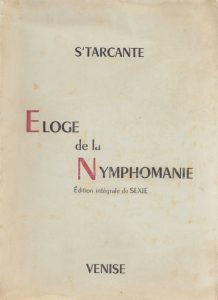Éloge de la nymphomanie. Venise, [1960]. Fort in-8, broché. Édition originale de l'édition intégrale de Sexie publié par Éric Losfeld en 1960. Rare.