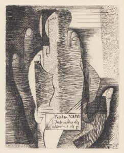 Indicateur des chemins de cœur. Paris, Jeanne Bucher, 1928. In-4, broché. Édition originale illustrée de 3 eaux-fortes de Louis Marcoussis. Un des 10 exemplaires sur hollande, beau papier après 4 japons. La suite des gravures avant la lettre est absente. Légers accrocs.