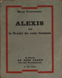 Alexis ou le Traité du vain combat. Paris, Au sans pareil, 1929. In-12, broché. Édition originale. Envoi autographe signé de Marguerite Yourcenar à l'écrivain Victor Margueritte. Quelques rousseurs et deux feuillets mal découpés.