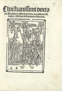 Édition latine de ces sermons sur la Passion du Christ du philosophe et théologien français Jean Charlier de Gerson (1363-1429), qui fut entre autres chancelier de l'université de Paris.